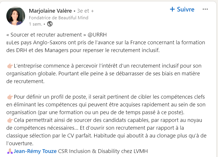 - Comment rénover les méthodes de sourcing et de recrutement pour embaucher plus de profils ayant un handicap, visible ou invisible ?